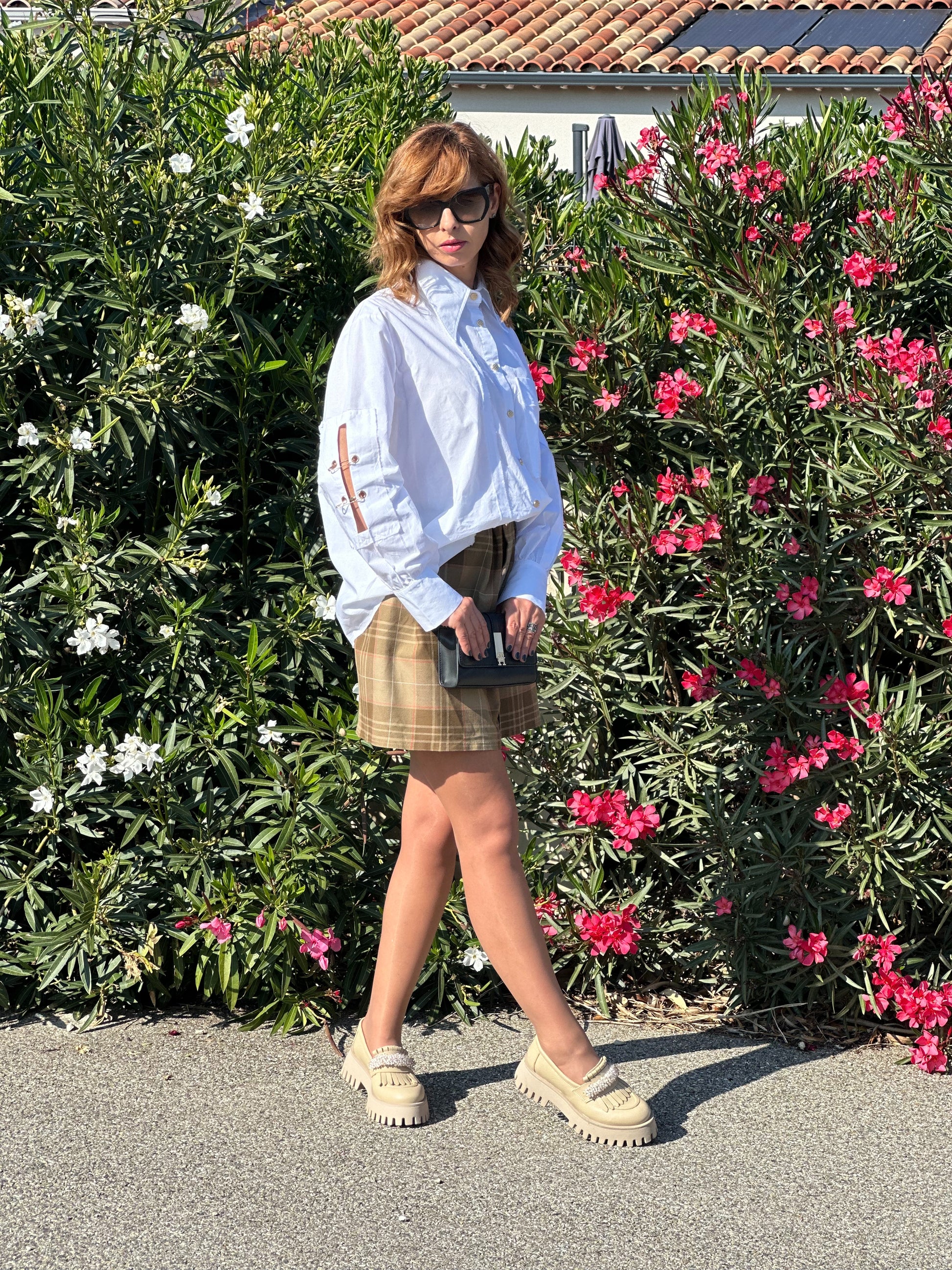 Jolie mini-jupe à carreaux en tissu tartan, léger et confortable, idéale pour un look chic et décontracté. Coupe droite, parfaite pour toutes les occasions.