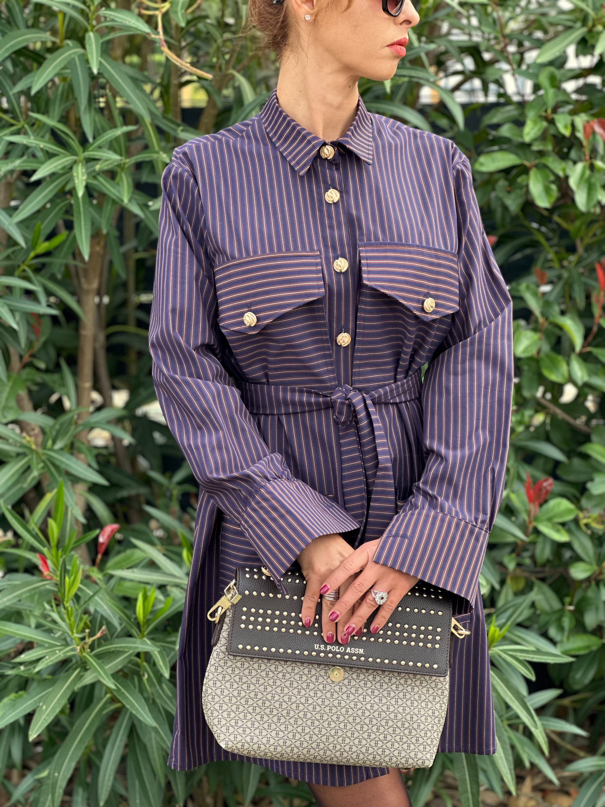 Élégante et moderne, cette robe chemise courte en coton séduit par ses rayures raffinées aux nuances de violet, noir et beige. Son design fluide et léger offre confort et liberté de mouvement, tandis que ses poches avant ajoutent une touche pratique et chic. Idéale pour un look décontracté tout en restant sophistiquée.
